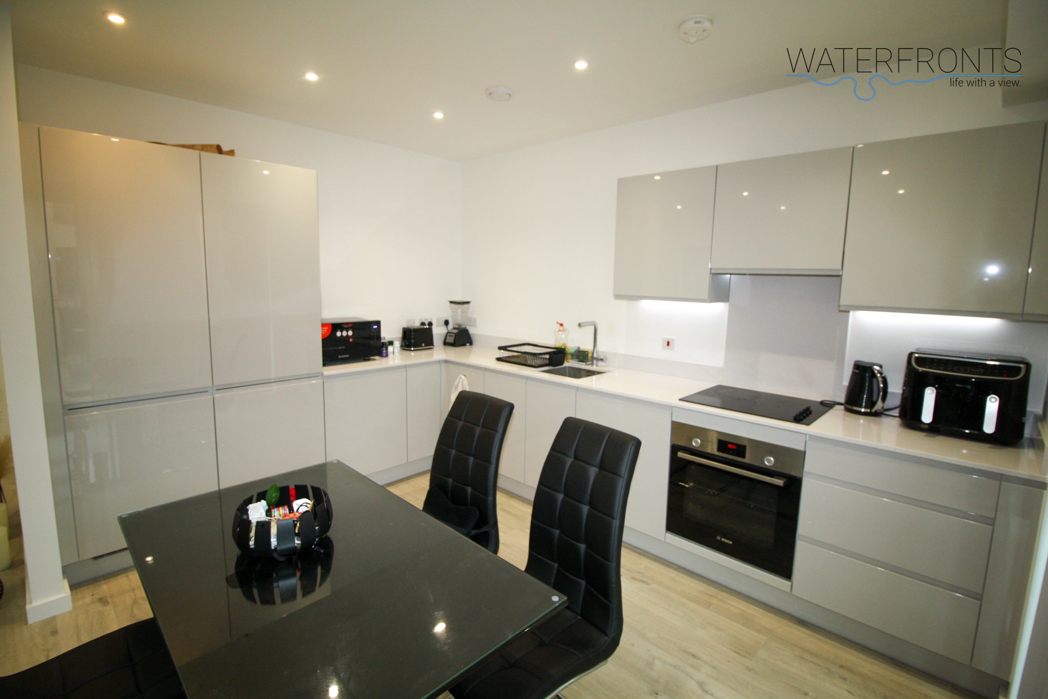 Situated on a higher floor within a secure, modern development, this bright and airy apartment features an open-plan living and dining area, a sleek fully-fitted kitchen with integrated appliances, two generous double bedrooms (including a master with ensuite), and a stylish family bathroom. Floor-to-ceiling windows flood the space with natural light, while a private balcony provides excellent views of the surrounding skyline.
